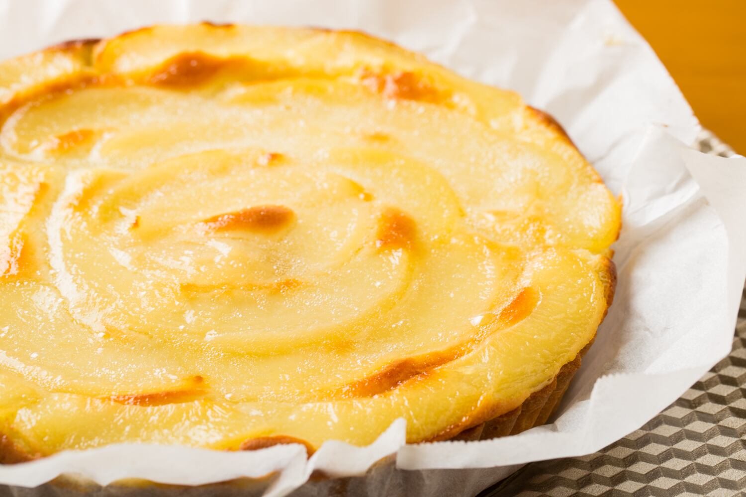 山形の白桃缶と2種類のチーズをたっぷりと使用した桃乃香の名前にちなんだオリジナルチーズタルトです。タルト生地にはそば粉も使用しております。